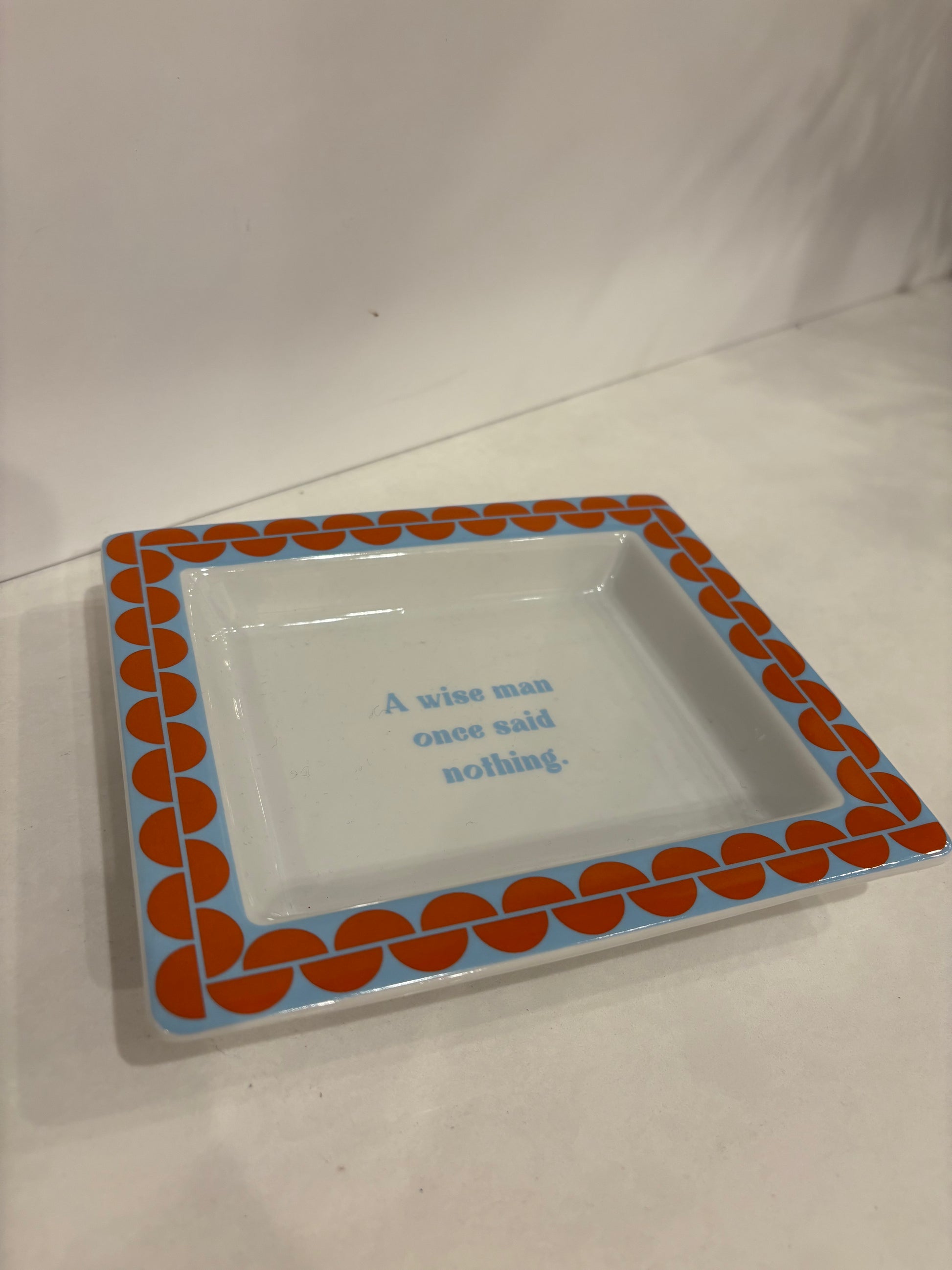 Simple, sleek, and just the right amount of cheeky — this Wise Sayings Porcelain Tray is a stylish reminder that sometimes silence says it all. Featuring the clever phrase “A wise man once said nothing,” this porcelain tray brings a touch of wit and modern sophistication to your space.